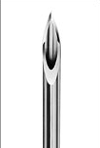 鍼灸の鍼の場合先が丸みを帯びています。(松葉型と呼ばれています。)