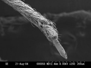 針先が鋭くとがっているのが分かると思います。しかも、大変硬くて弾力性がありません。